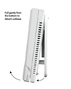 To properly detach a VIVE thermostat from its sub-base gently pull from the bottom of the thermostat. See the below example.